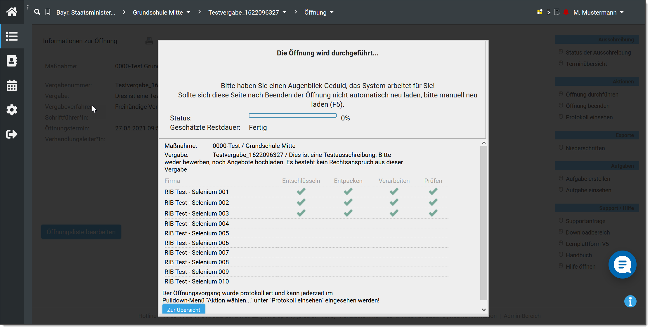 Sie sehen die Bieternamen, die Ihre Angebote sowohl digital als auch auf dem konventionellen Wege eingereicht haben. Es existieren in diesem Beispiel drei digitale Angebote.