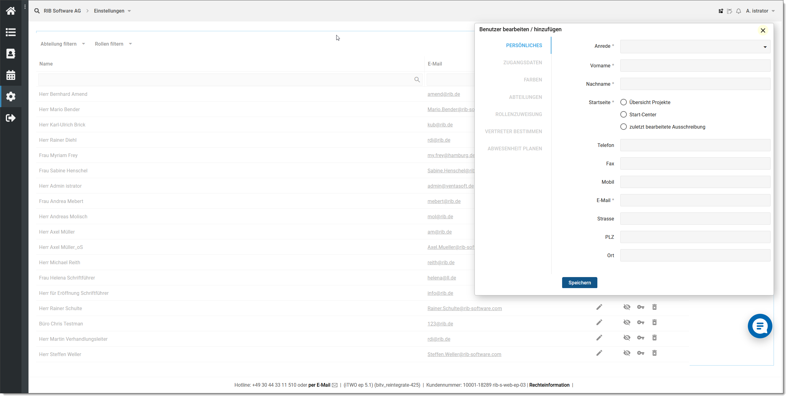 Es öffnet sich dann die Erfassungsmaske für den neuen Benutzer. Alle Felder, die mit einem * versehen bzw. rot umrandet sind, müssen mit Inhalt gefüllt werden.