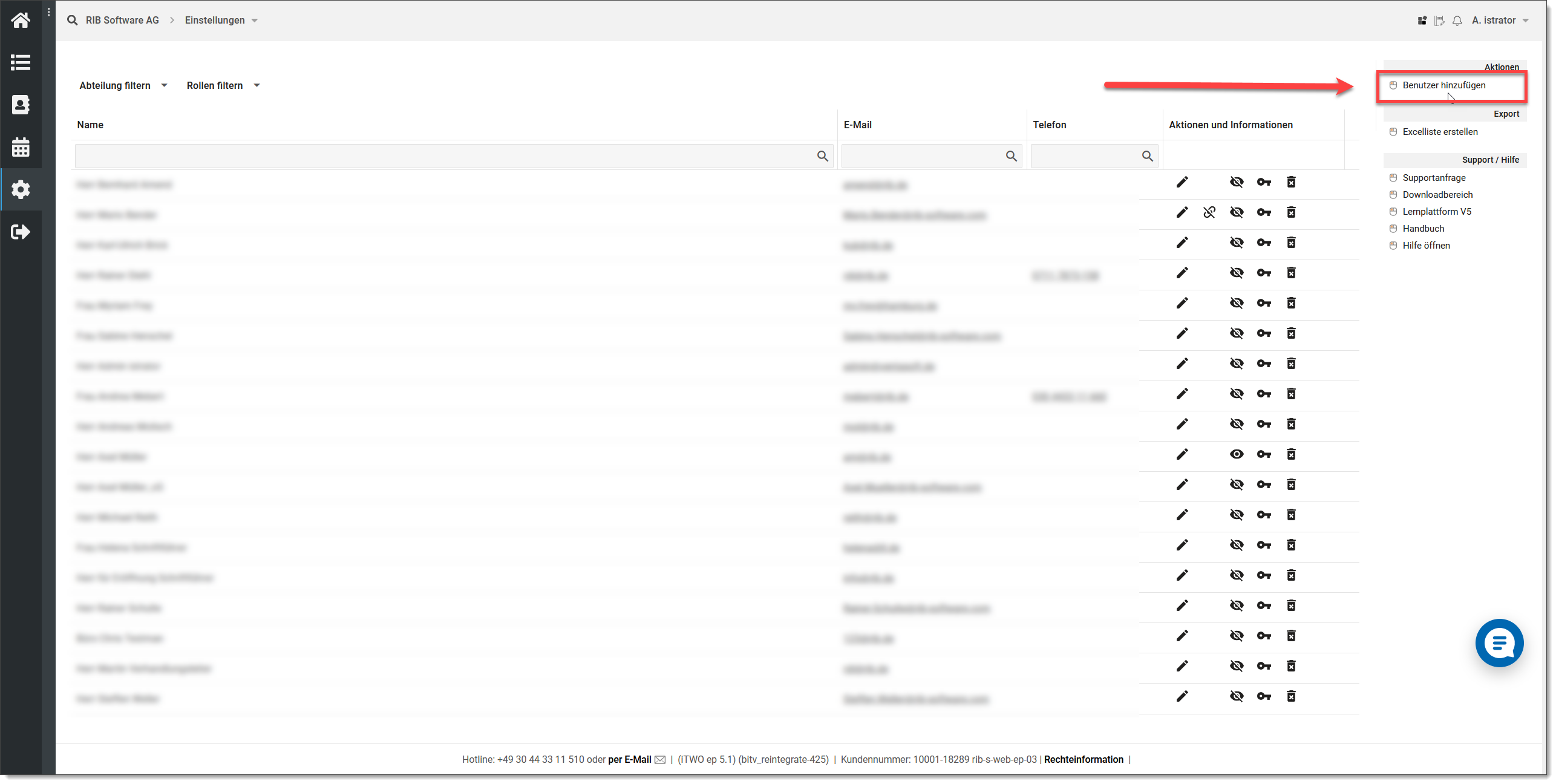Um einen neuen Benutzer einzurichten klicken Sie im Aktionenmenü Sie auf Benutzer hinzufügen.