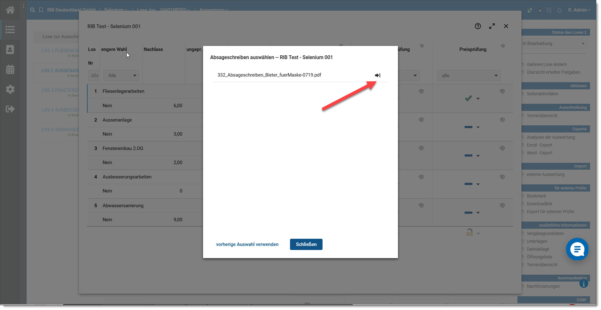 Mit dem Befehl Alle Lose anzeigen auf der Auswahl Lose zur Ausschreibung, werden wieder alle Lose eingeblendet.