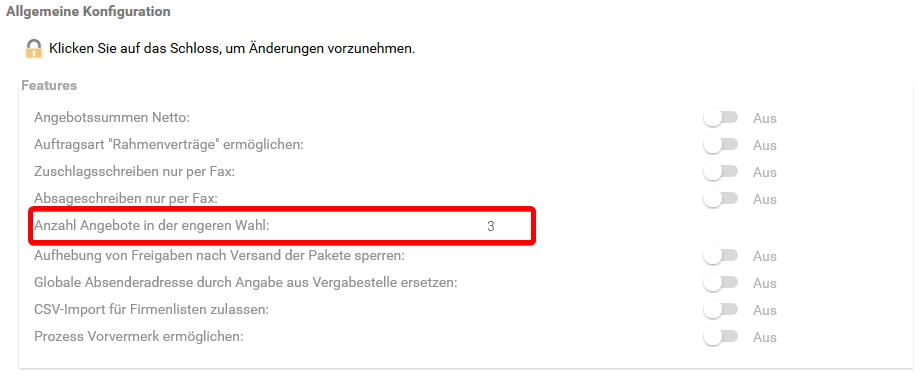 In diesem Bereich können sie die Anzahl der Bieter der engeren Wahl anpassen.