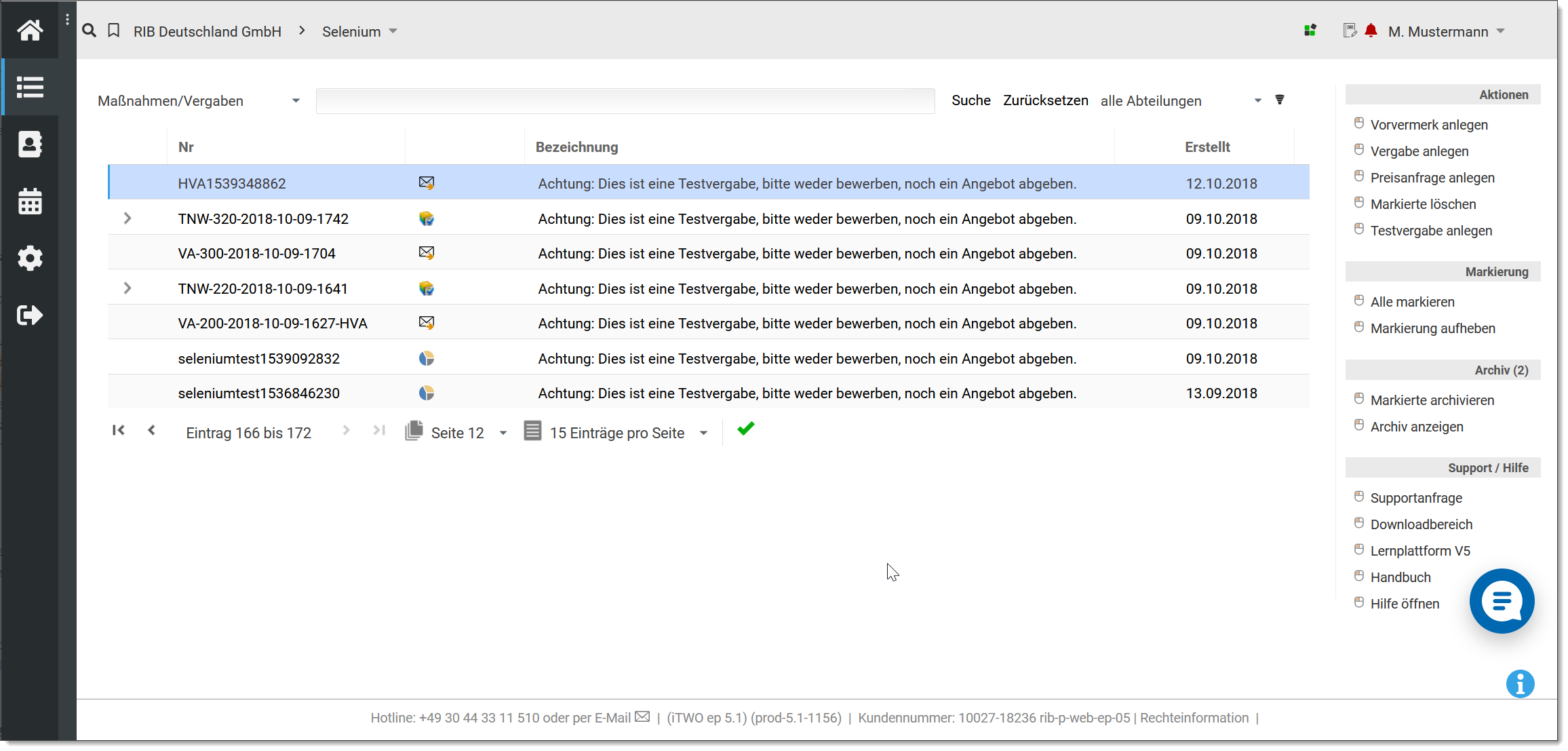 Navigation: Vergabeplattform: RIB eVergabe > Arbeiten mit der Plattform