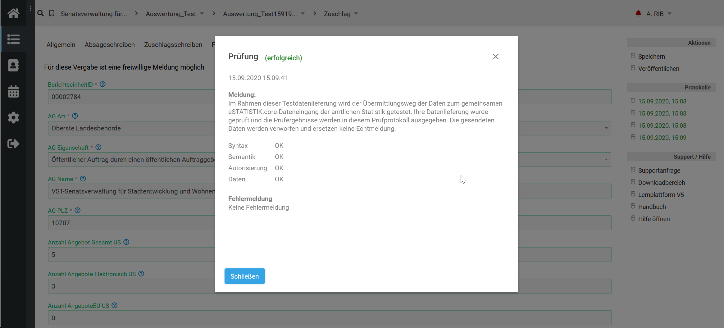 Vergabestatistik (VergStatVO) Meldung