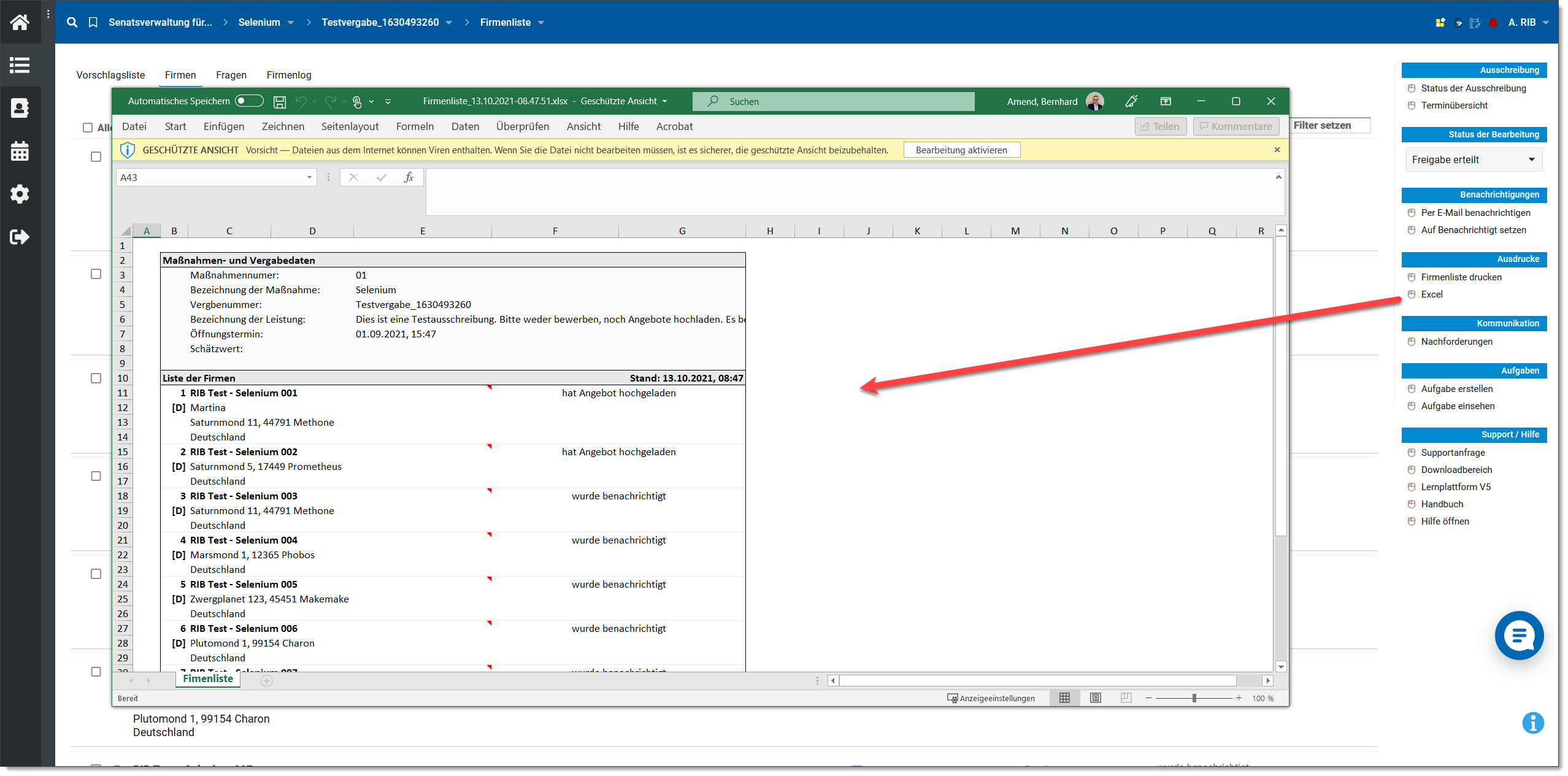 Navigation: Vergabeplattform: RIB eVergabe > Arbeiten mit der Plattform > Firmenliste > Firmen > Firmenlisten Ausdrucke