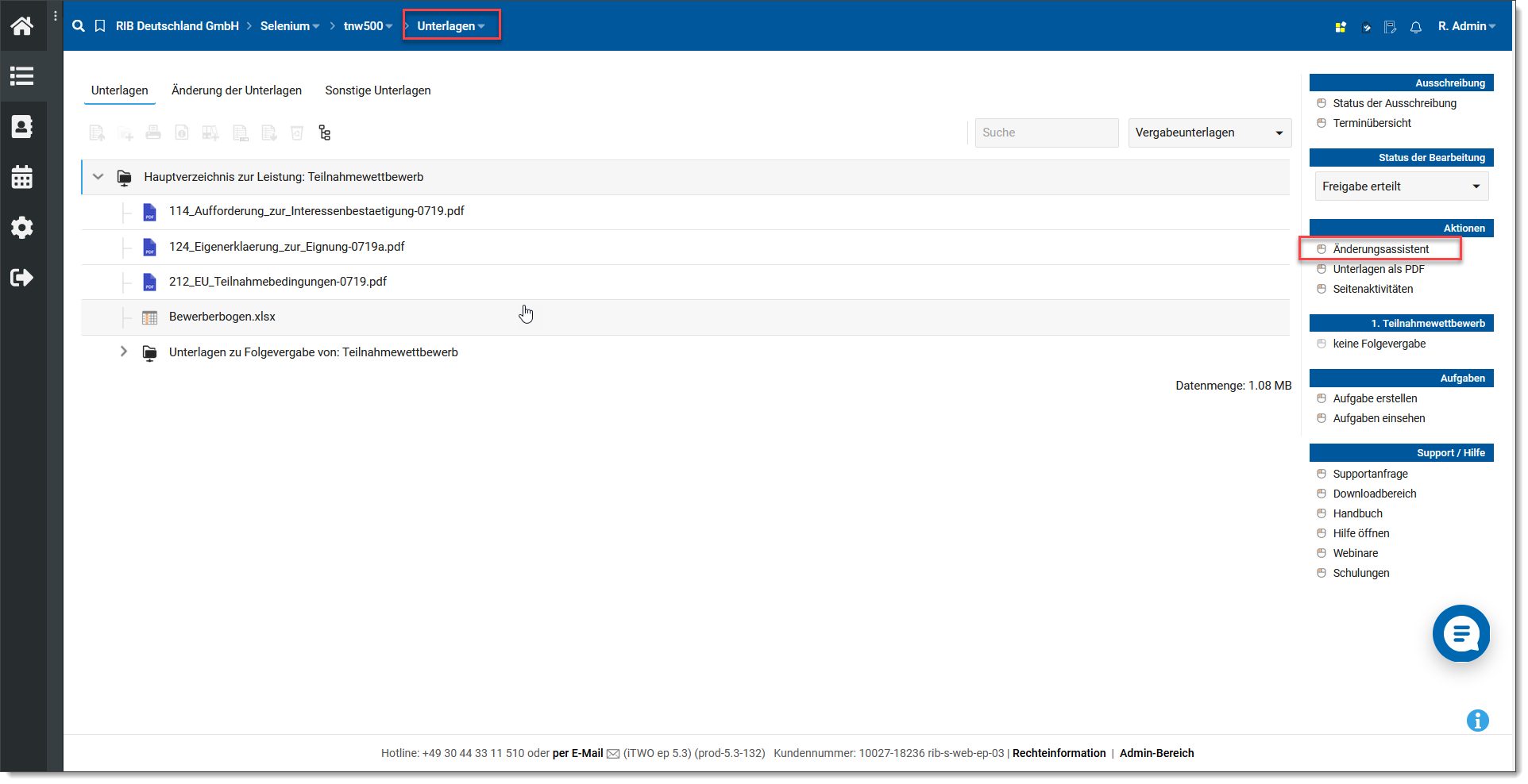Navigation: Vergabeplattform: RIB eVergabe > Arbeiten mit der Plattform > Teilnahmewettbewerbe