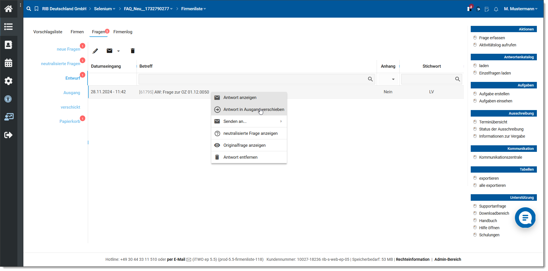 Arbeiten Sie im Bereich der Antworten mit einem Freigabeprozess, so kann eine bereits erstellte Antwort auf den Registern Entwurf und Ausgang (also vor dem Versand) nochmals von einem hierfür autorisierten Benutzer bearbeitet und damit korrigiert werden.