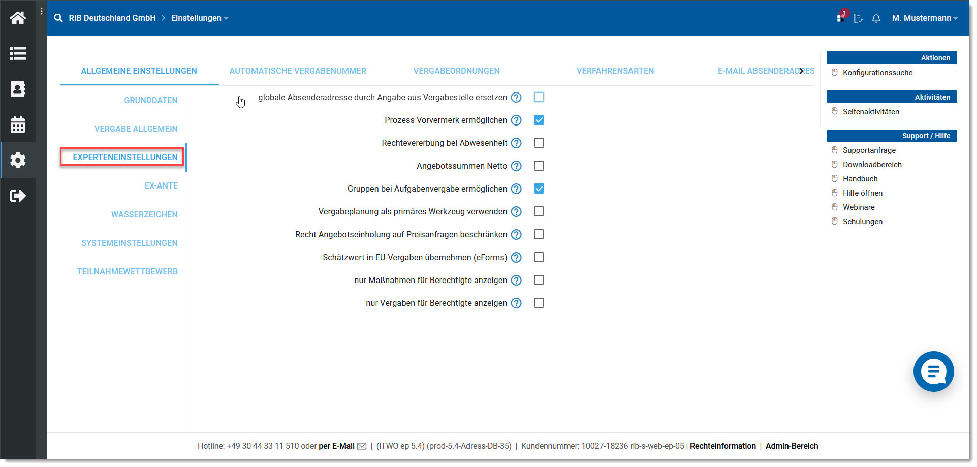 Navigation: Vergabeplattform: RIB eVergabe > Administration der Plattform > Konfiguration > Allgemeine Einstellungen