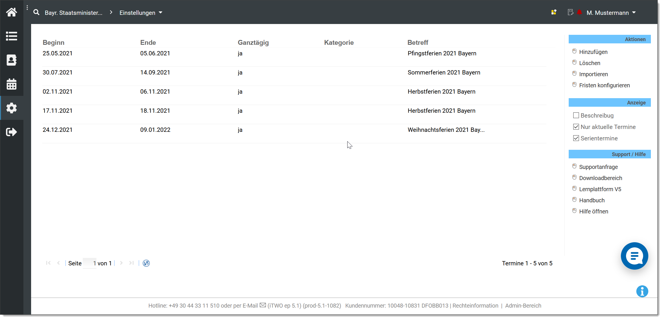 Serientermine sind Termine die sich wiederholen. Ein Serientermin wäre zum Beispiel ein Wochenende mit Samstag und Sonntag an dem keine Vergaben stattfinden können. Hat die Vergabestelle festgelegt, dass zum Beispiel an Freitagen nie Öffnungen stattfinden sollen, wäre dies ebenfalls ein Serientermin.
